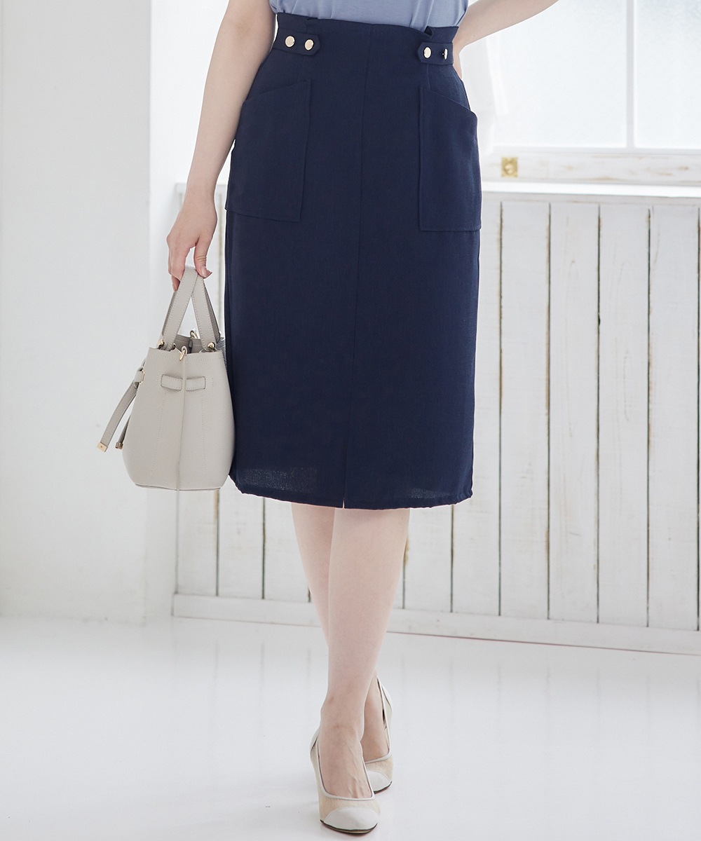 【SALE】リネンライクミニベルトデザインポケ付タイトスカート