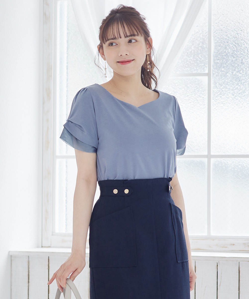 少しつや感のある素材なのでカジュアルになりすぎず、 夏の通勤着としても人気が高い夏の定番カットソー。 オンオフ兼用使いがおすすめ。