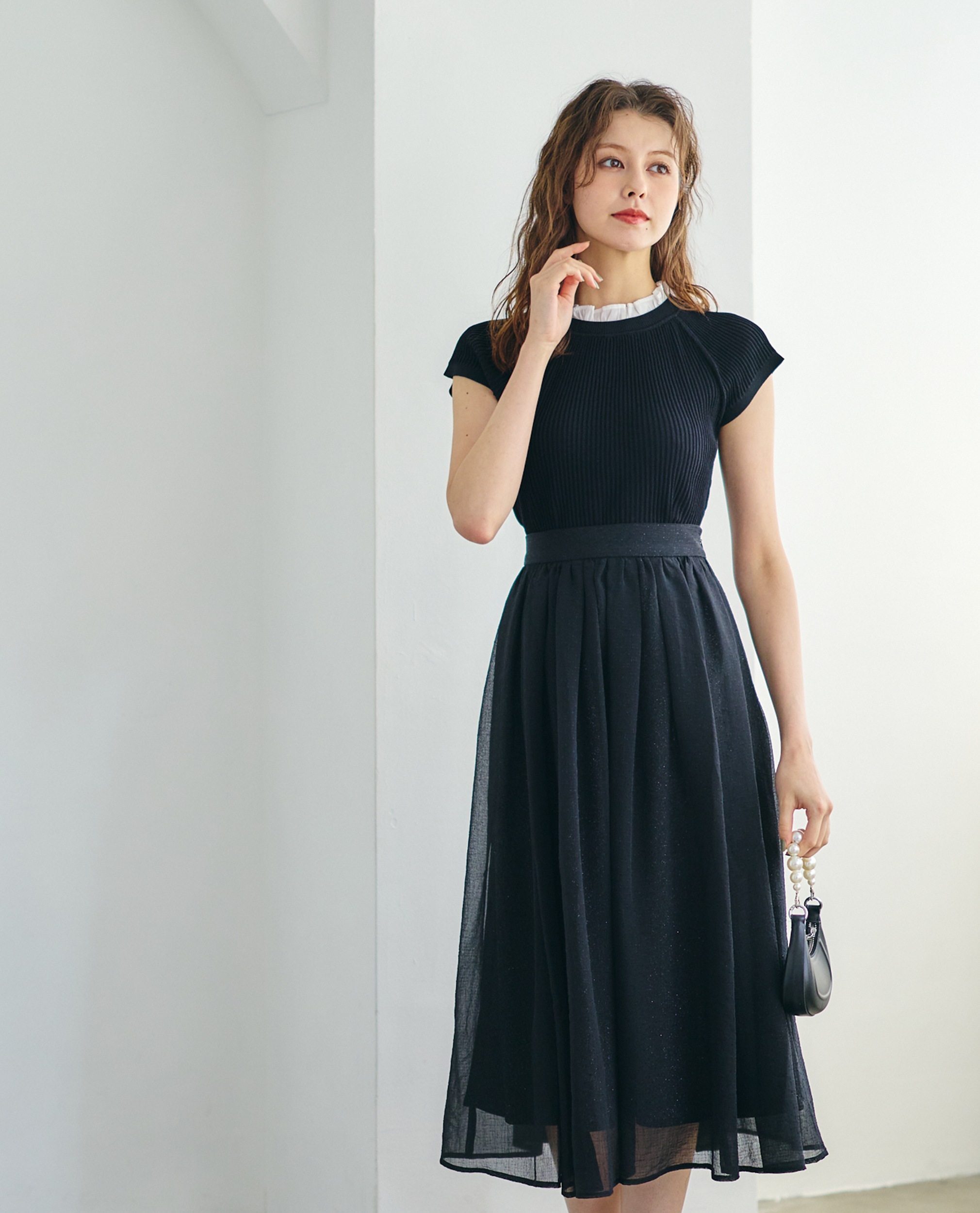 光を受けてきらめくスカートが、 夏らしい軽やかさをプラス。