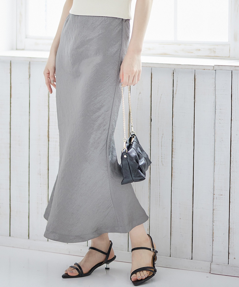 下半身を着痩せさせたいならとにかくこれ! ナローなシルエットで一見すると躊躇してしまいますが、 実はバイヤスカットで作っているためウエスト〜腰回り〜足もとまでとにかく伸びます!(30代骨格ウェーブ談) 膝下で少しくびれるようなマーメイドライクなシルエットになるので、横から見たとき身体が薄く見えます♪