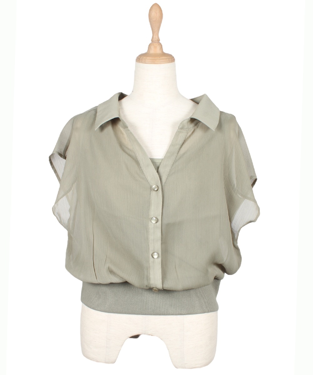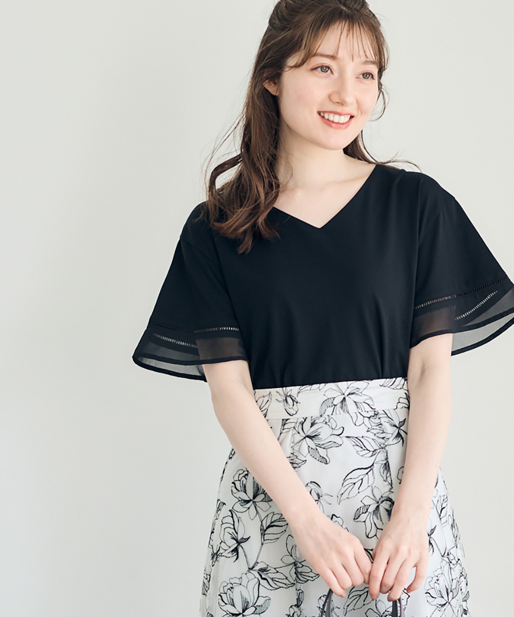 【期間限定】シアーVネック袖タックインナー付プルオーバー