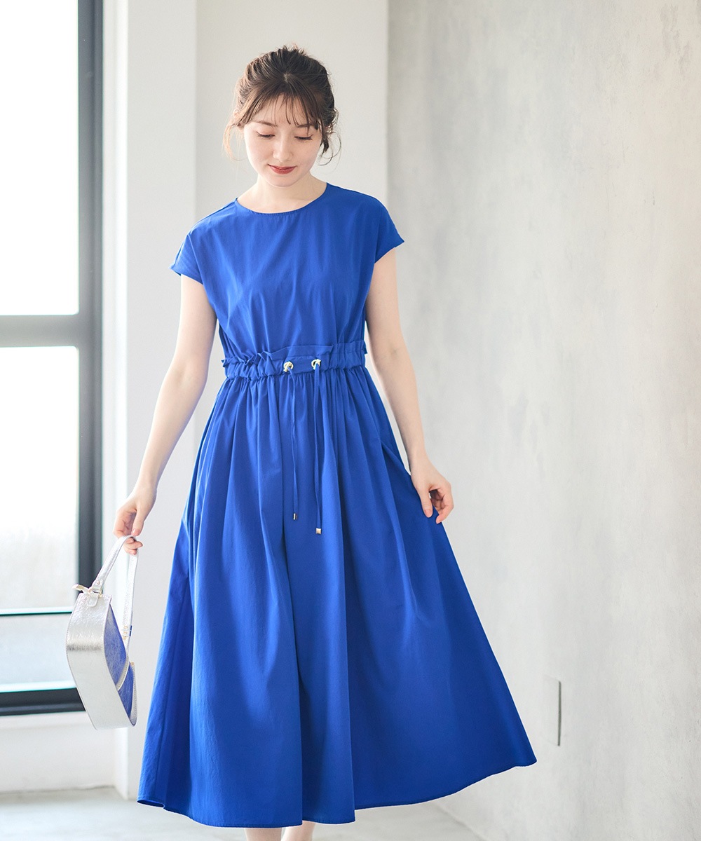 【期間限定】Vネックウエストピンタックフレアワンピース