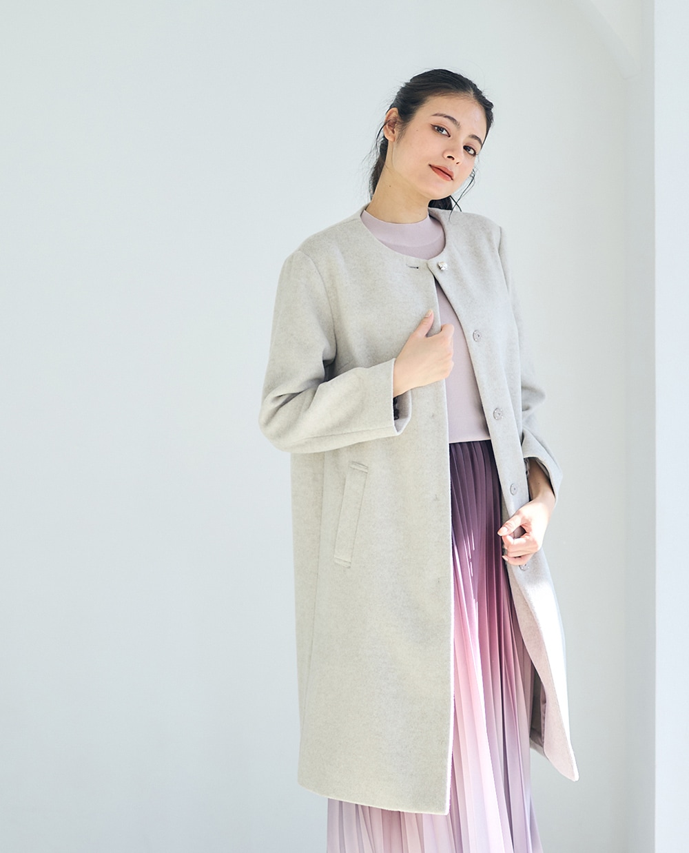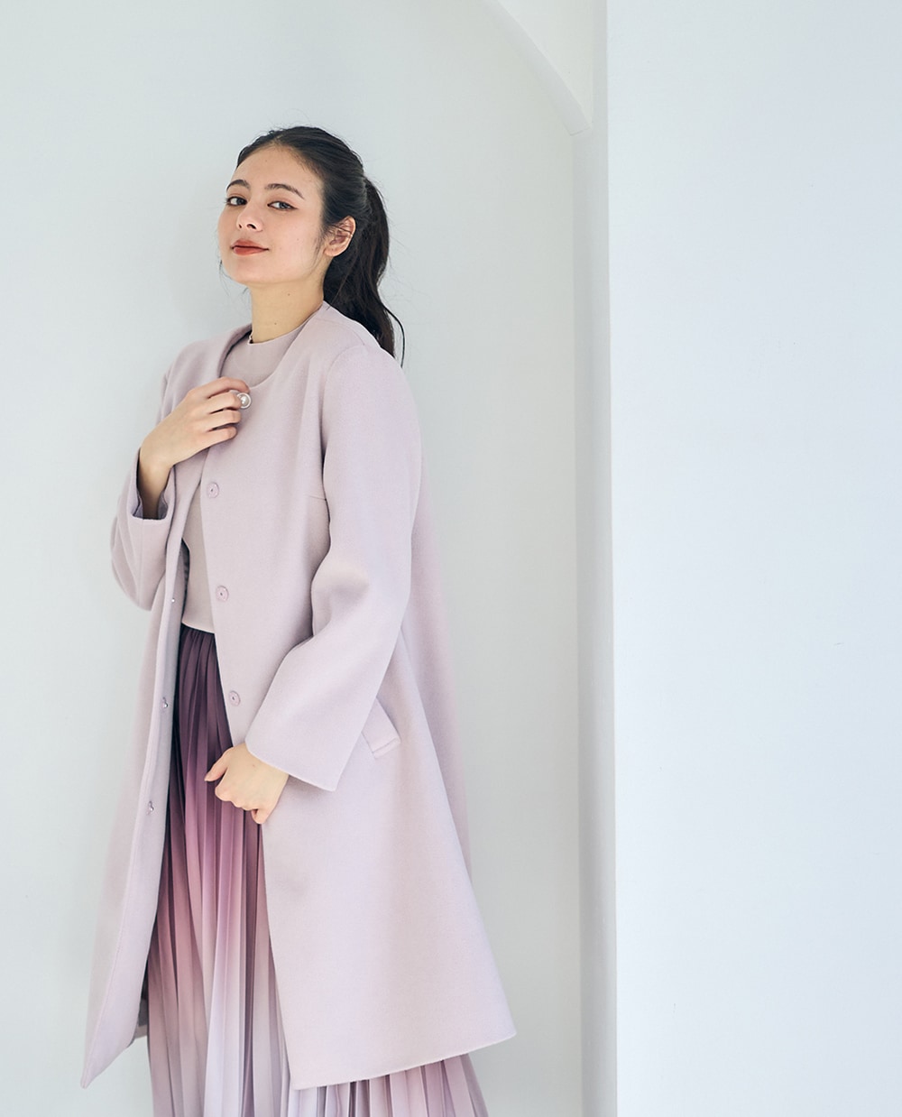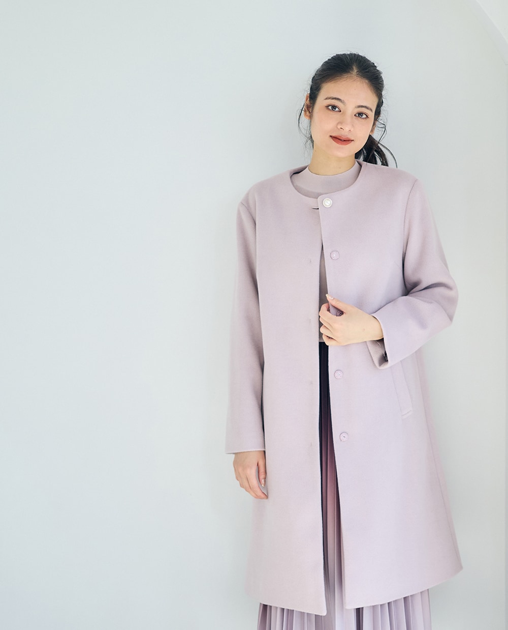 美シルエットにこだわった上品コートに、
