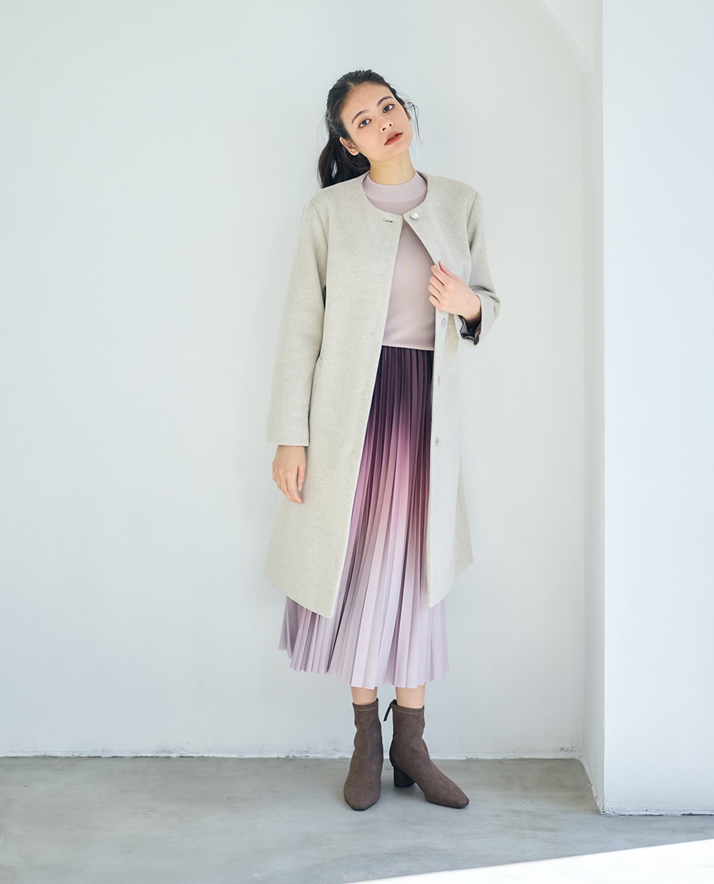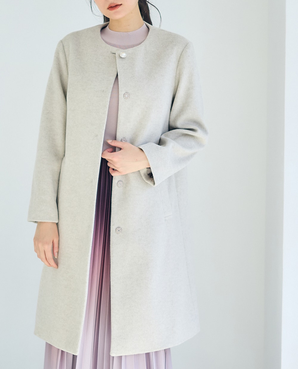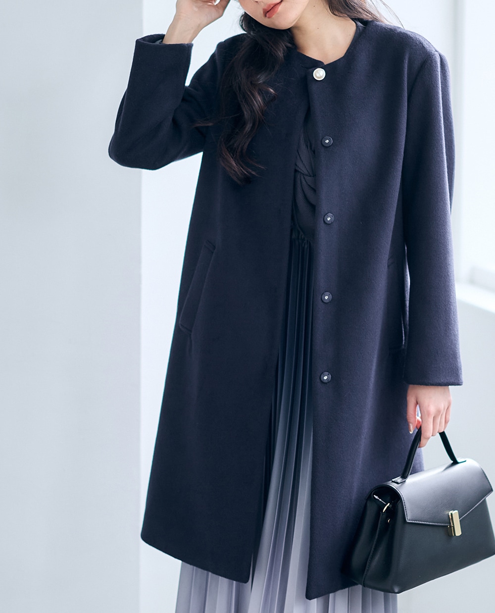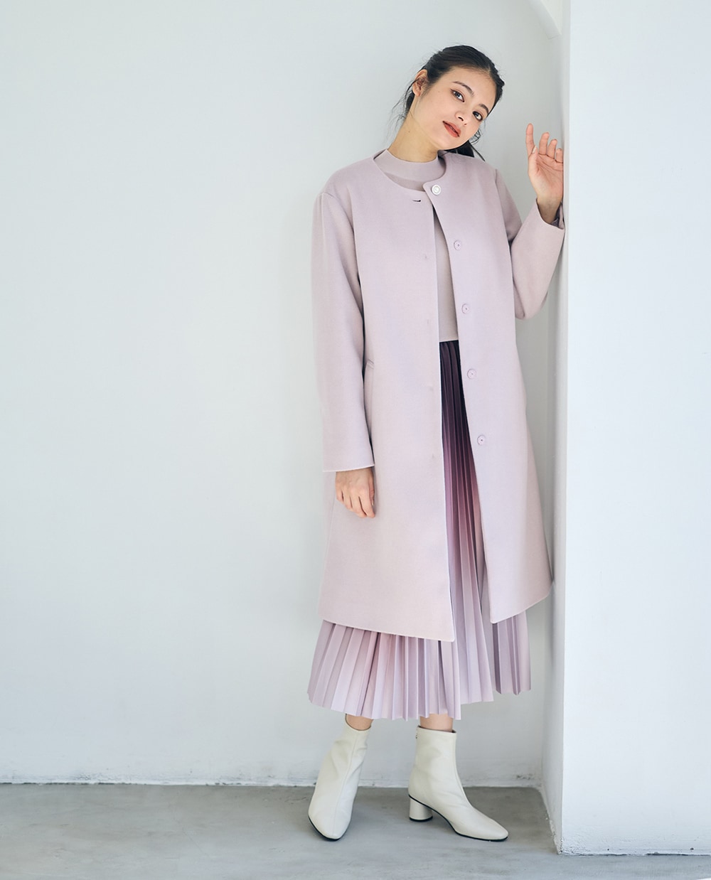 美シルエットにこだわった上品コートに、